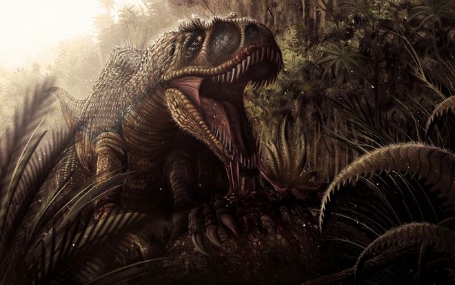 研究人员推测,霸王龙在远古时期的陆地上,属于顶级猎食者,它们用后肢前行,靠着粗壮的身体,强大的咬合力大杀四方,成为当时恐龙中最可怕的存在。