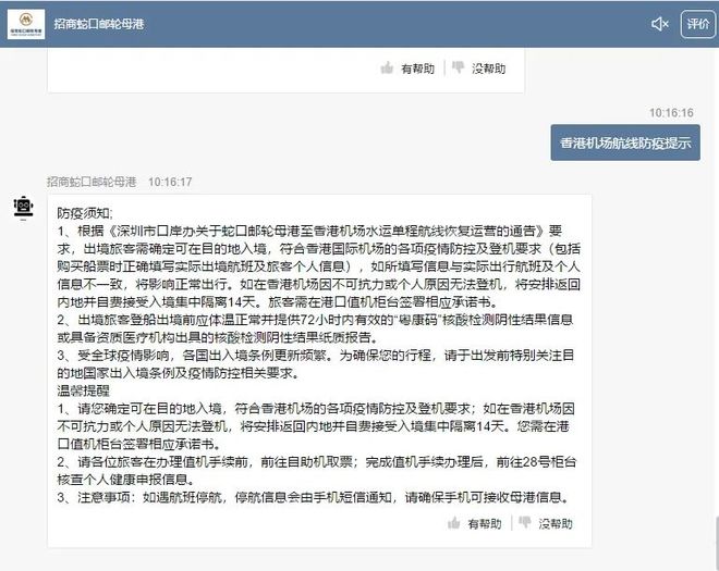 近日已经有家长和学生从蛇口码头成功抵达机场,并为我们带来了一手消息,快和新姐一起看看吧!