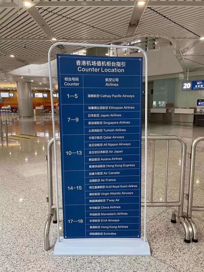 香港机场各航司值机柜台号码