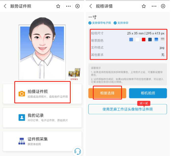 选择:证件照(支付宝小程序)