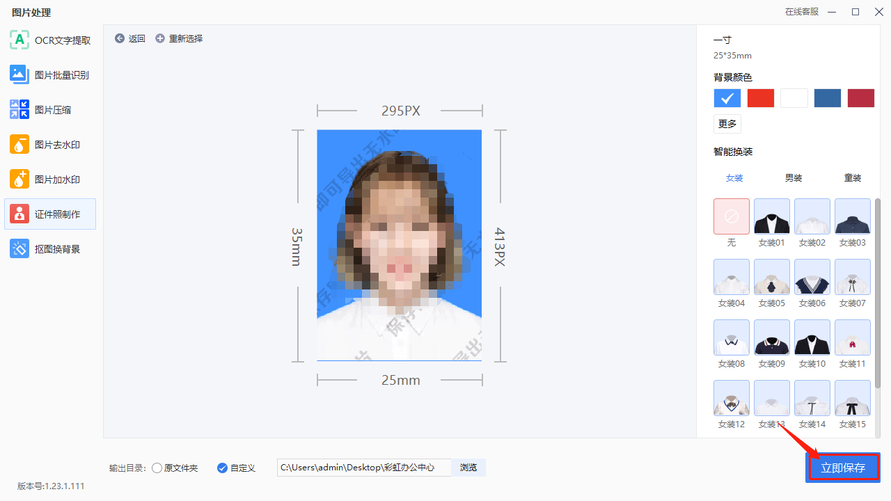 添加好照片之后,就会自动裁剪成一寸照,然后再点击【立即保存】就可以了。