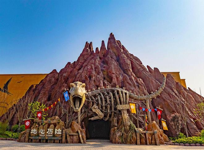 从《恐龙危机》出来以后,继续往右前方走,这里有两个不能错过的项目:《穿越火山》(悬挂过山车)和《地心历险》,推荐先玩地心,这个项目太受欢迎了,如果先玩过山车的话后面要排大长队。