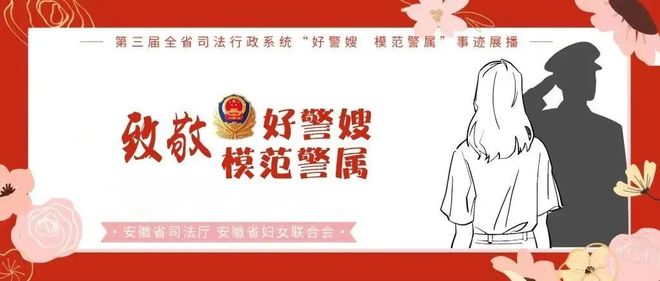 为表扬先进,树立榜样,省司法厅、省妇女联合会共同举办了第三届全省司法行政系统“好警嫂(模范警属)”评选活动,评选出40名“好警嫂(模范警属)”。即日起,“安徽司法”微信公众号将持续展播“好警嫂(模范警属)”的先进事迹,激励全省广大司法行政干警踔厉奋发、锐意进取,奋力推进新时代新征程全面依法治省和司法行政工作现代化,为建设现代化美好安徽贡献力量。