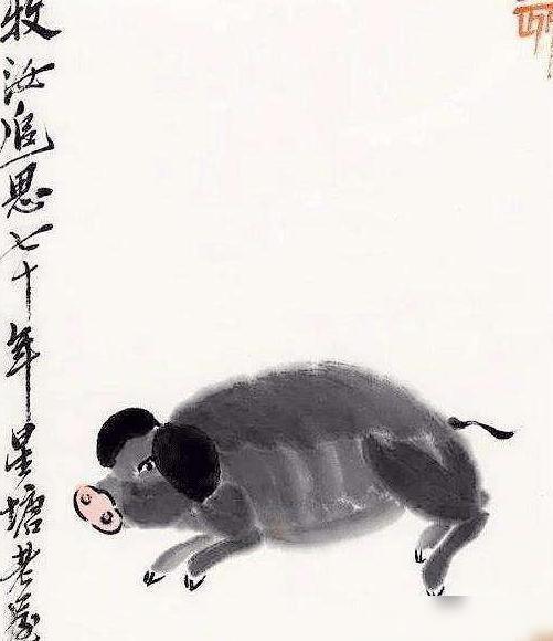 当初刚踏入绘画的行列中,齐白石主要是以肖像画入行。所以这也是解释齐白石的画作为何如此写实,同时也是齐白石的优势所在。不过后来,齐白石优秀的作品基本与写实沾不上边,那是因为齐白石转变风格,更注重中国绘画的写意的优美感觉。所以齐白石所创作的猪更多的是写意,跟徐悲鸿的猪是不同。