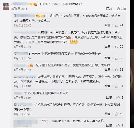 RNG在这场比赛失利后,打野小龙堡惨遭RNG粉丝们的质疑。自RNG在本赛季买进小龙堡后,小龙堡身上的争议就不断。小龙堡与宁、小天同出于YM,宁、小天接连在S赛上夺得SMVP,也让所有人对小龙堡充满了期待。小龙堡凭借两位前辈的荣誉卖出了高价,然而却没有打出相应的效果,春季赛的RNG只是堪堪入围季后赛,随后便以"一轮游"结束了春季赛之旅。